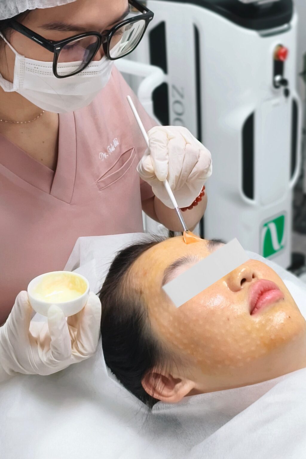Kỹ thuật thoa đóng vai trò quyết định: bác sĩ sử dụng cọ chuyên dụng để trải một lớp peel mỏng, đảm bảo độ đồng đều và kiểm soát thời gian tiếp xúc chính xác. Việc này trực tiếp hỗ trợ quá trình làm hồng bi, vì nếu để acid tiếp xúc quá lâu có thể gây bong tróc hoặc bỏng, còn nếu quá ngắn thì hiệu quả sẽ không đạt. Do đó, sự tính toán chính xác về thời gian và nồng độ là yếu tố then chốt.