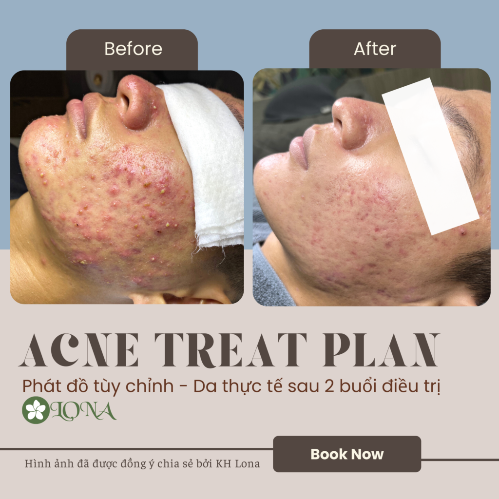 Hình ảnh minh chứng cho phác đồ điều trị mụn ở spa và phác đồ điều trị mụn được Lona Home Spa áp dụng, khẳng định vai trò của liệu trình trị mụn trong điều trị mụn hiệu quả tại spa trị mụn Cần Thơ.